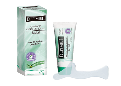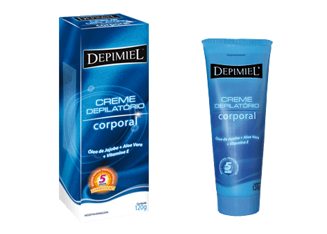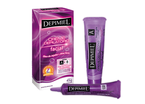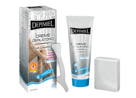 Método rápido, prático e indolor: 7min, remove o pêlo. sem causar desconforto. BISNAGA A: CREME DEPILATÓRIO 30G. BISNAGA B: CREME NEUTRALIZANTE 15G. O Creme Neutralizante Pós-depilatório DEPIMIEL da bisnaga “B” é elaborado com Extrato de Larrea Divaricata, Óleo de Jojoba e Aloe Vera que, além de retardar e diminuir o crescimento do pelo, protegem e hidratam a pele.